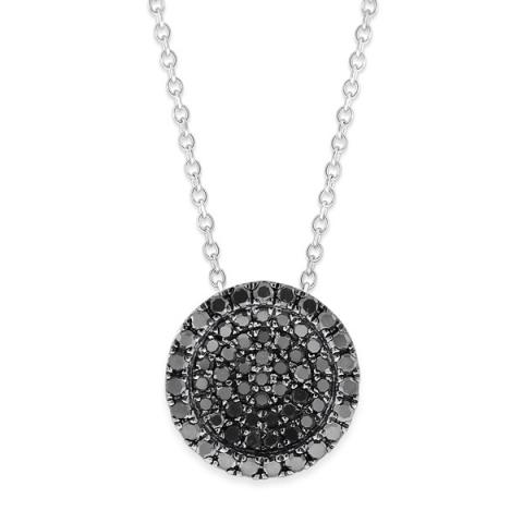 Black Diamond Concave Round Disc Necklace in 14K White Gold and Black Rhodium with 62 Diamonds Weighing .30ct tw.