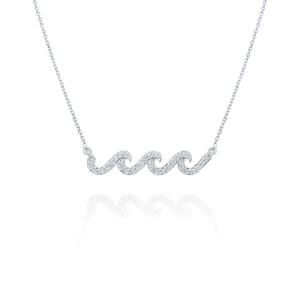 Show your love for the sea with this 14k gold and diamond wave necklace.