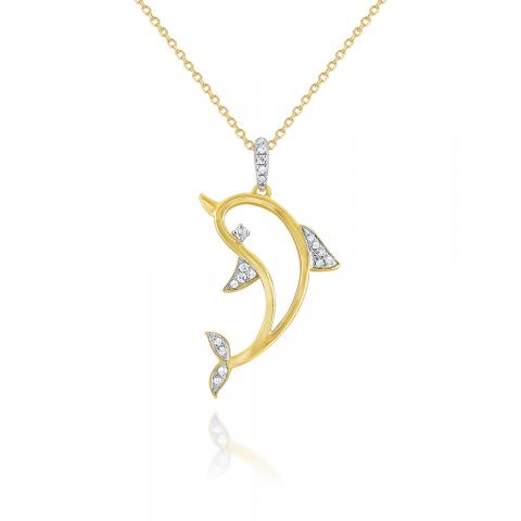 Show your love for the sea with this golden dolphin diamond necklace.