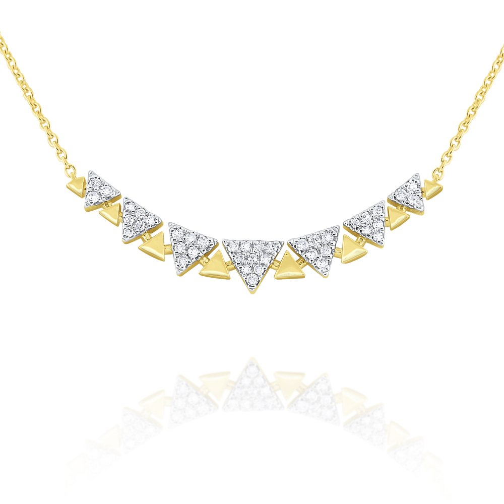 Modern geometric shapes crafted from gold and diamonds make up this simple yet elegant necklace.