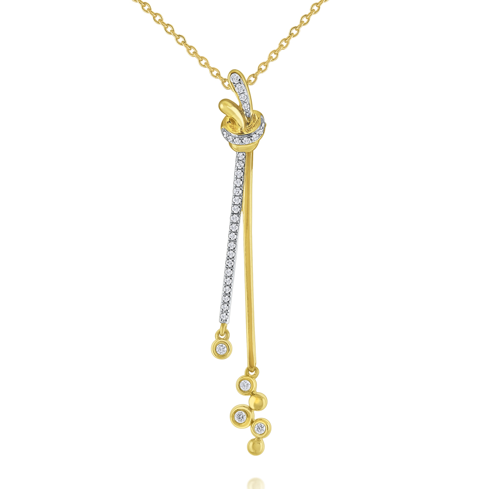 Diamonds set in bezels create a playful bubble design that swing freely on an adjustable golden chain.