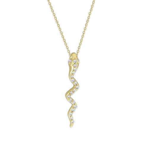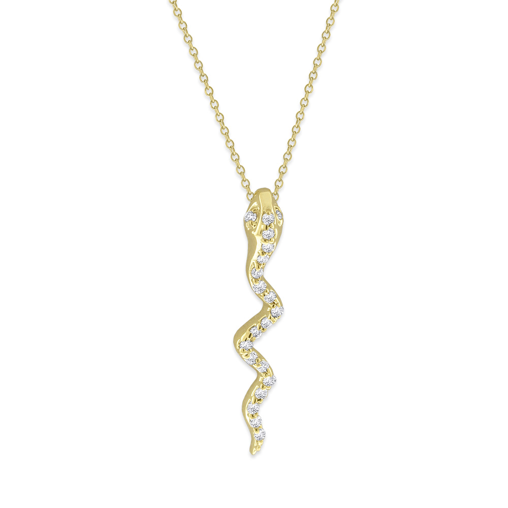 Diamond Small Snake Necklace in 14K Yellow Gold with 20 Diamonds Weighing .10ct tw