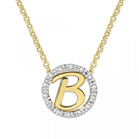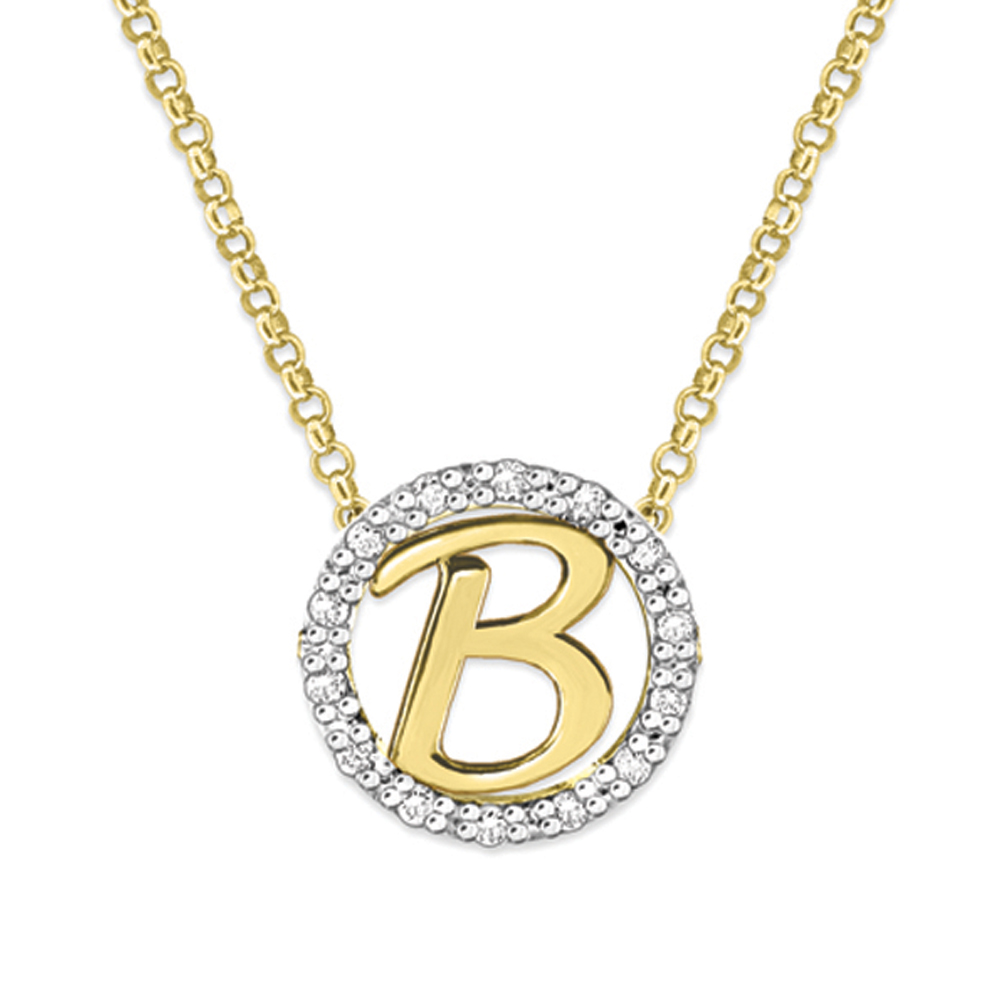 Gold and Diamond Mini Halo "B" Initial Necklace