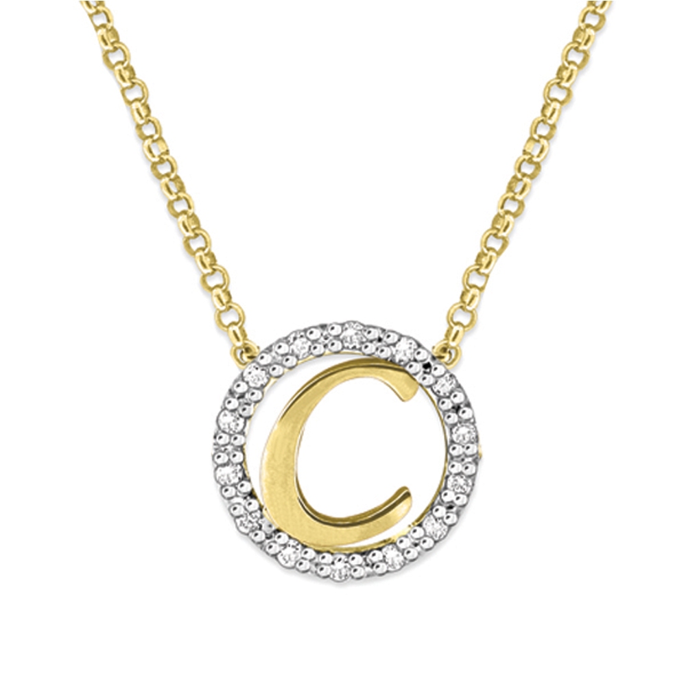 Gold and Diamond Mini Halo "C" Initial Necklace