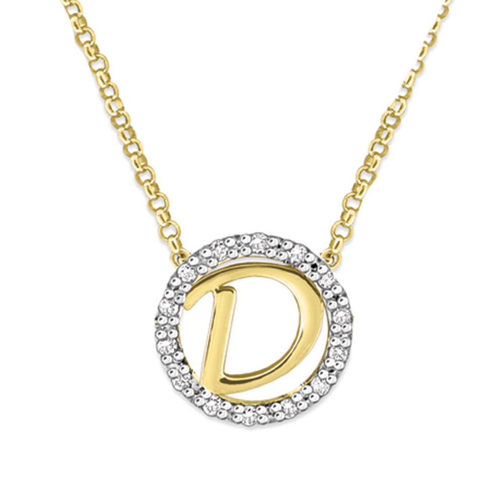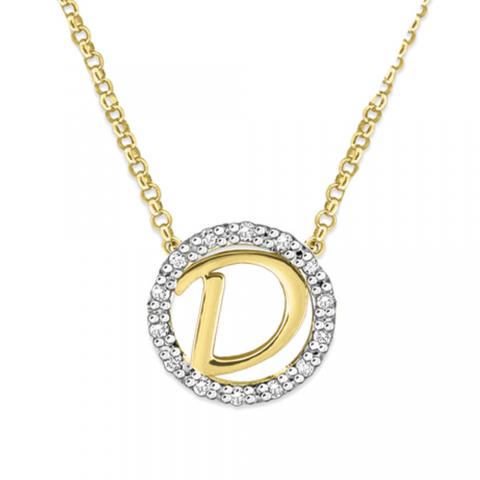 Gold and Diamond Mini Halo "D" Initial Necklace