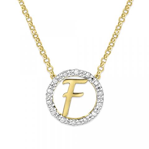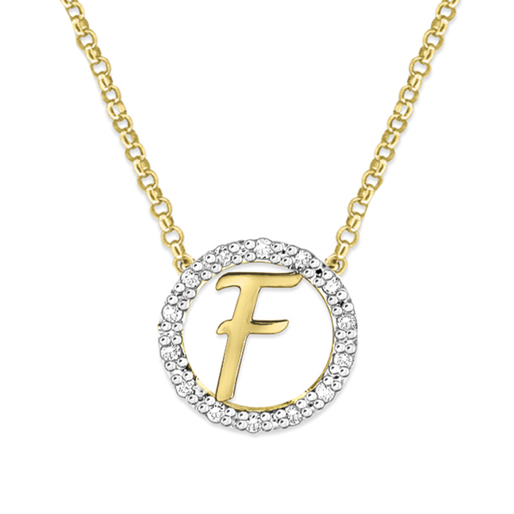 Gold and Diamond Mini Halo "F" Initial Necklace