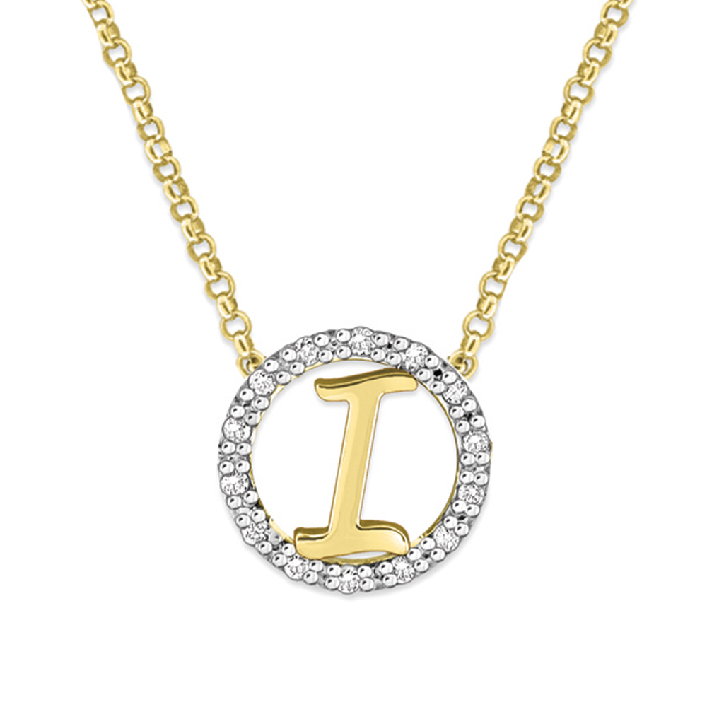 Gold and Diamond Mini Halo "I" Initial Necklace