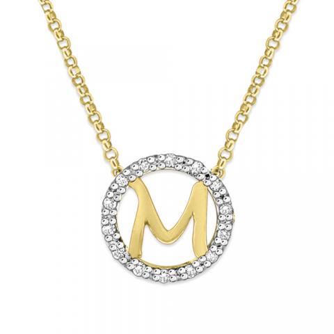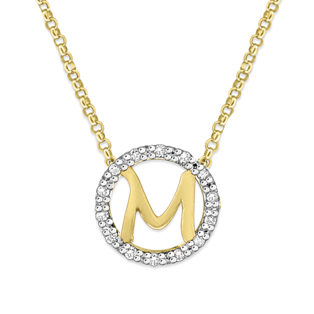 Gold and Diamond Mini Halo "M" Initial Necklace
