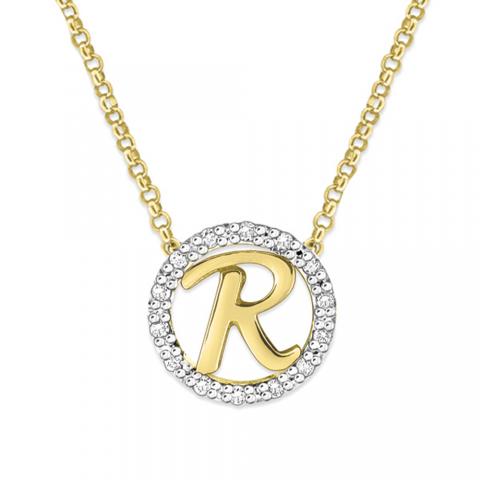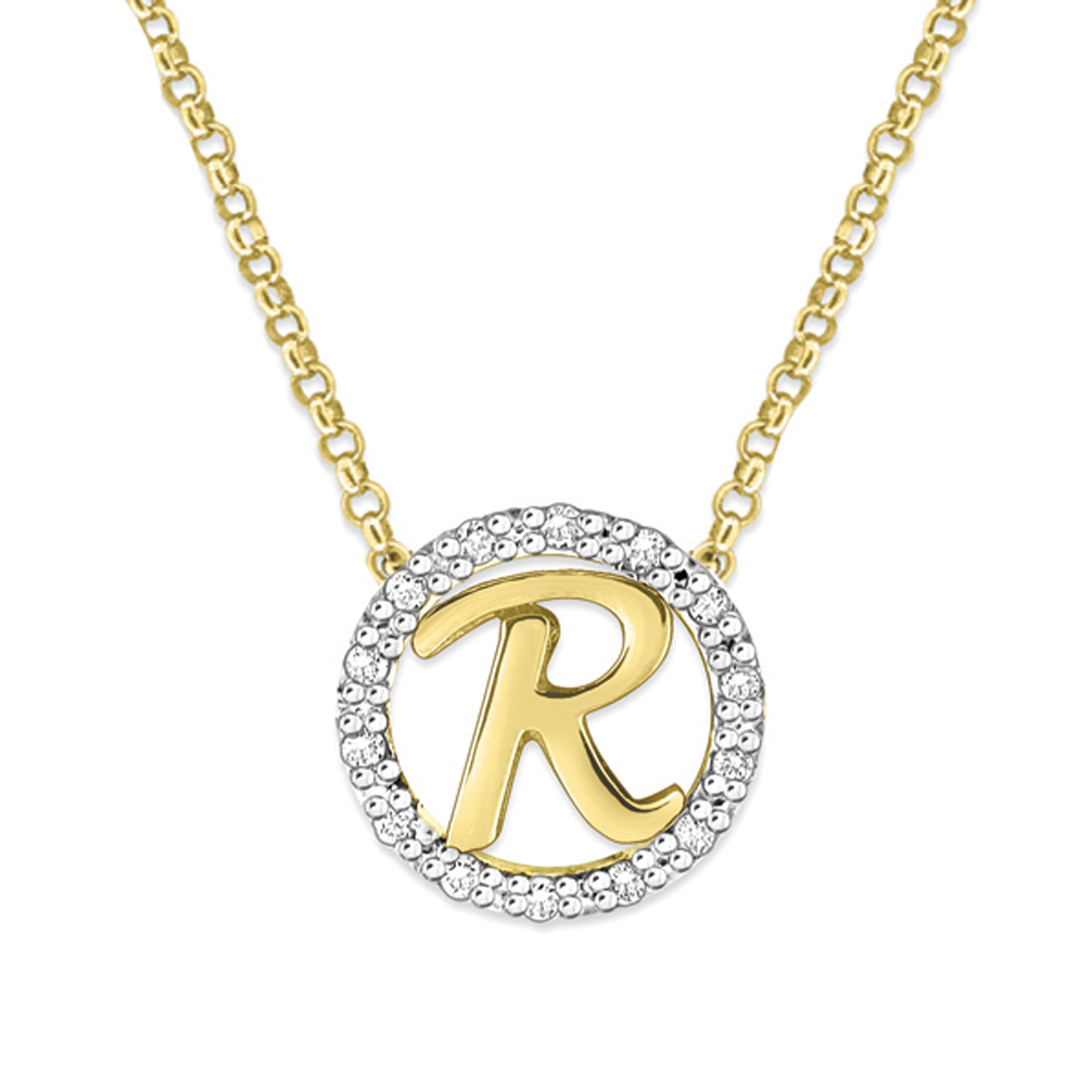 Gold and Diamond Mini Halo "R" Initial Necklace