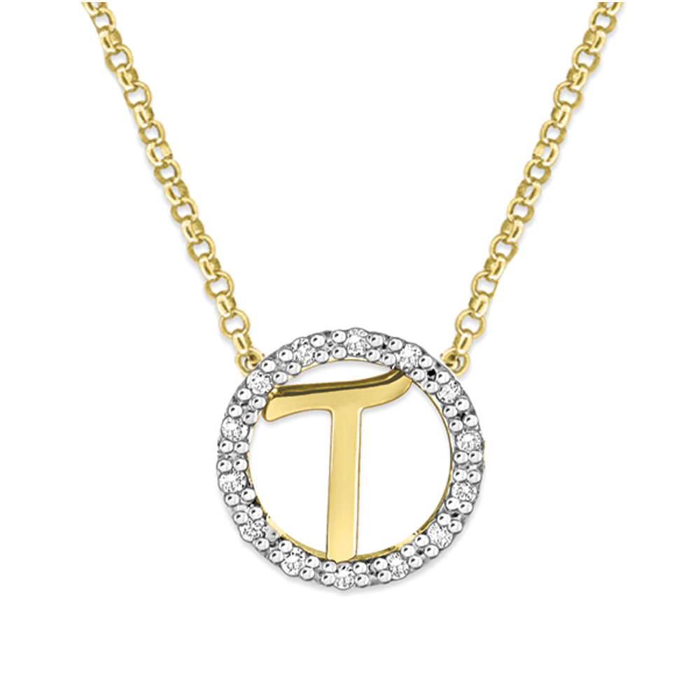 Gold and Diamond Mini Halo "T" Initial Necklace