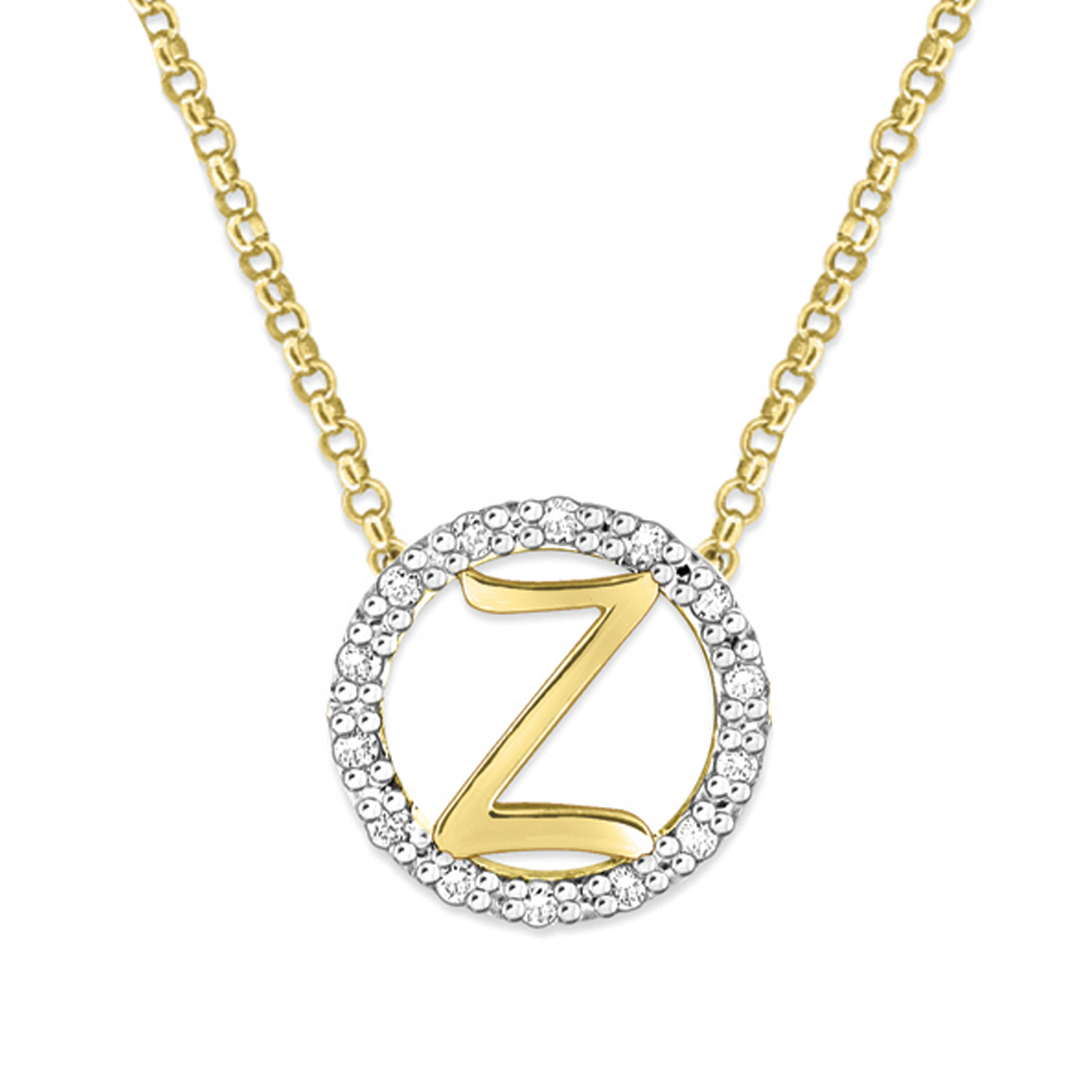 Gold and Diamond Mini Halo "Z" Initial Necklace