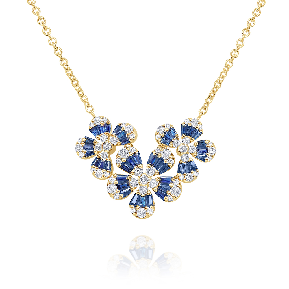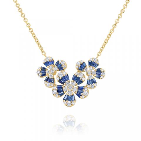 14k Diamond and Blue Sapphire Triple Flower Necklace