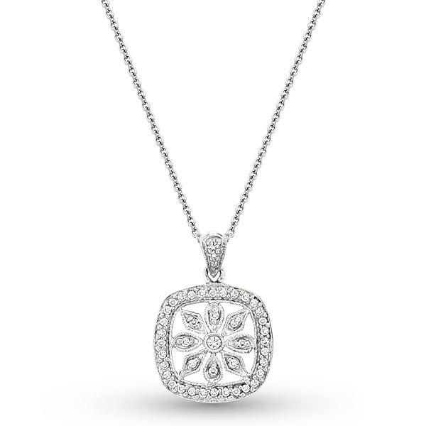 Diamond Antique Style Necklace in 14k White Gold with 42 Diamonds weighing .20ct tw.
