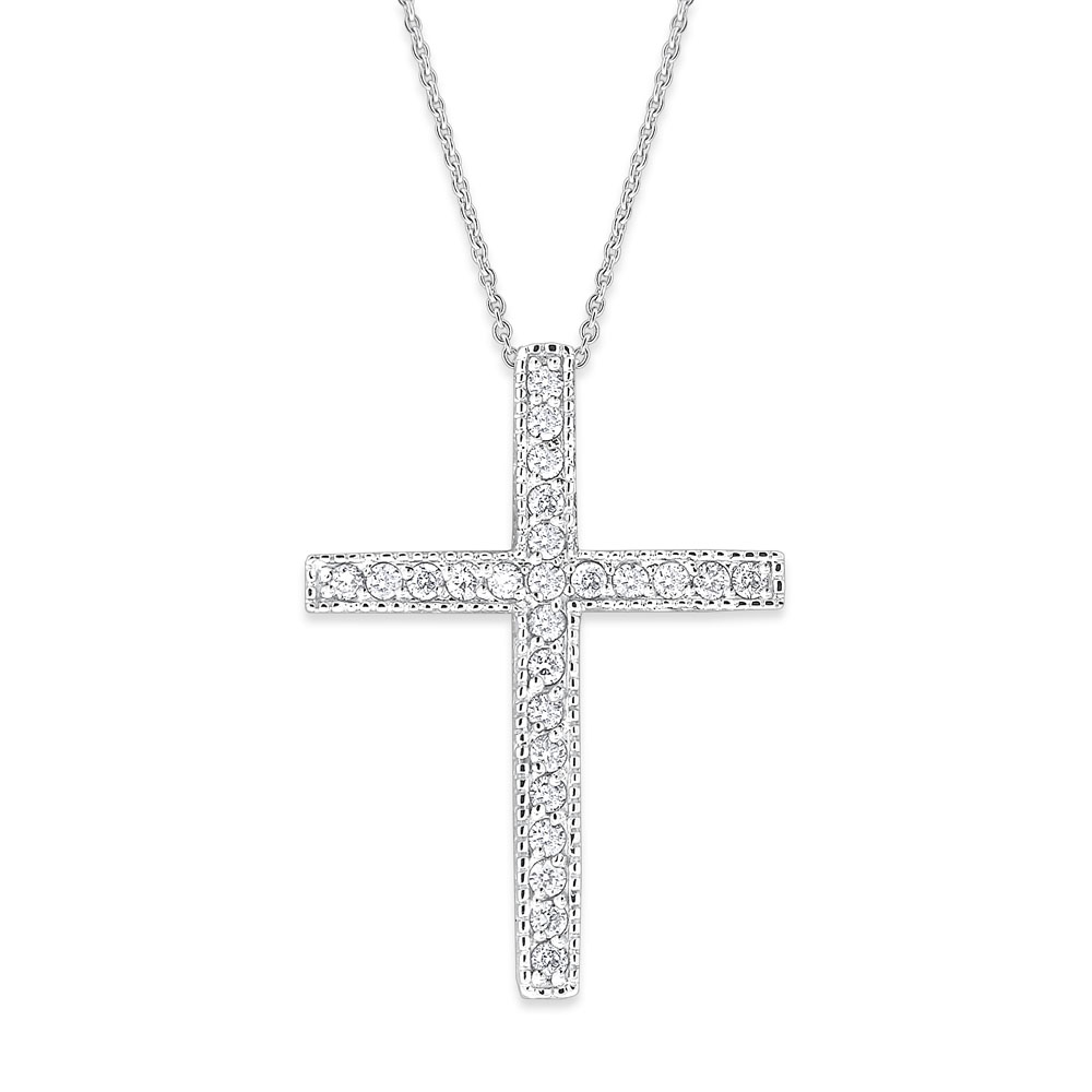 Diamond Cross Necklace in 14K White Gold with 25 Diamonds Weighing .25ct tw