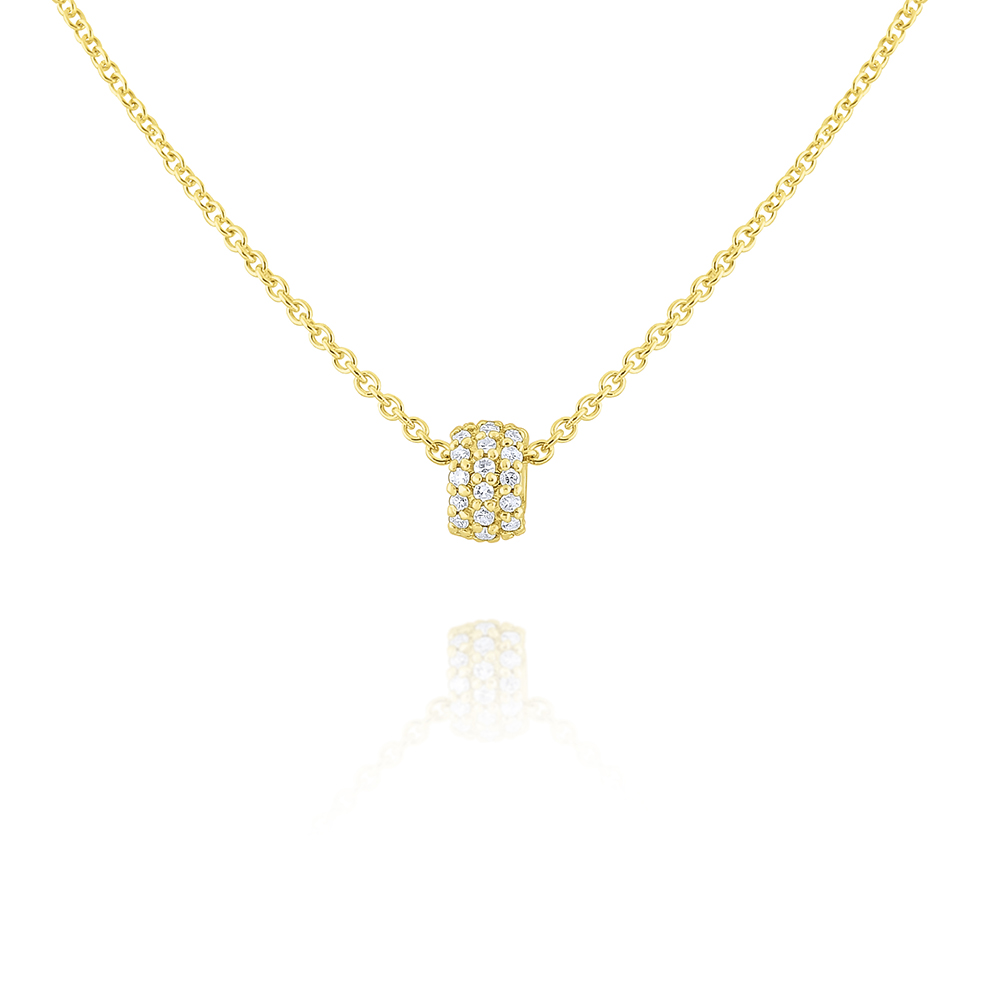 Pave diamonds set in 14k gold make up this simple rondel. Wear solo or use as a spacer to stack with our diamond charms.
