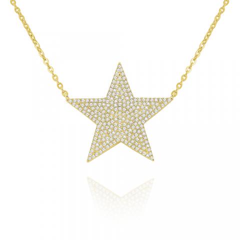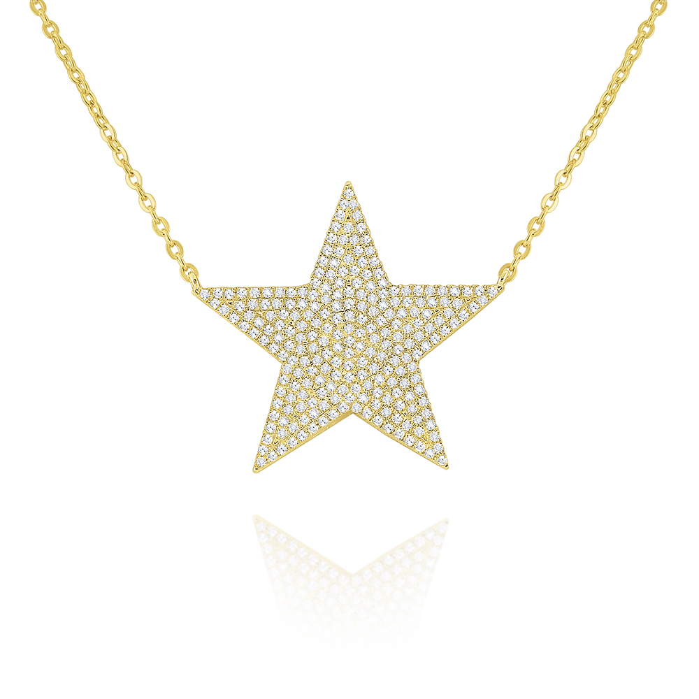 Wish upon a star....pave diamonds set in 14k gold shine in this large star necklace on an 18" adjustable chain.