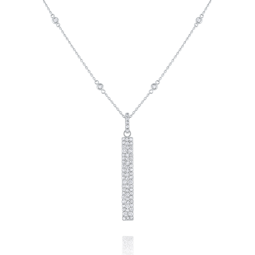Simple and modern, this classic diamond bar necklace on a diamond accent chain is the perfect accessory, day or night.