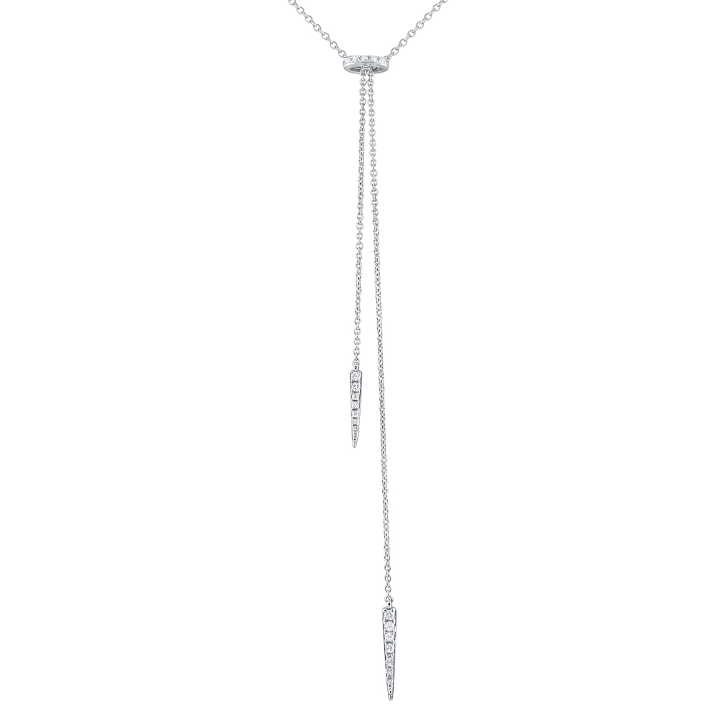 This Y-Shaped necklace holds two uneven chains held together by a gold open oval creating a unique and modern twist to your favorite statement piece.