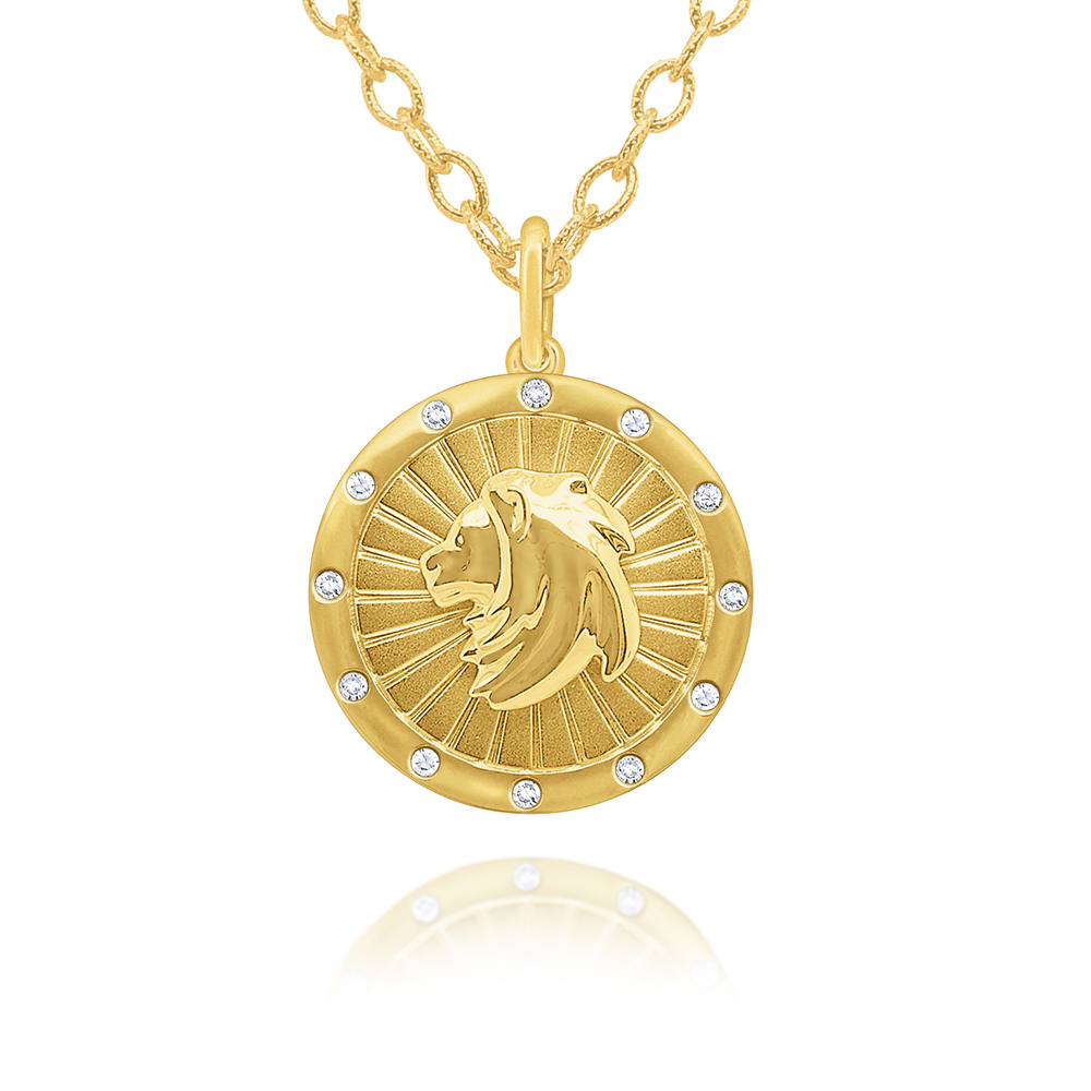 14k Gold and Diamond LEO Zodiac Medallion Necklace