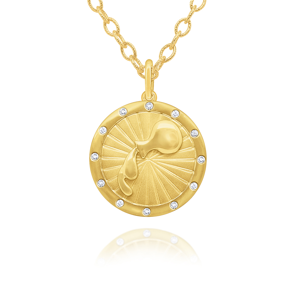 14k Gold and Diamond AQUARIUS Zodiac Medallion Necklace