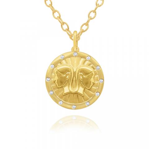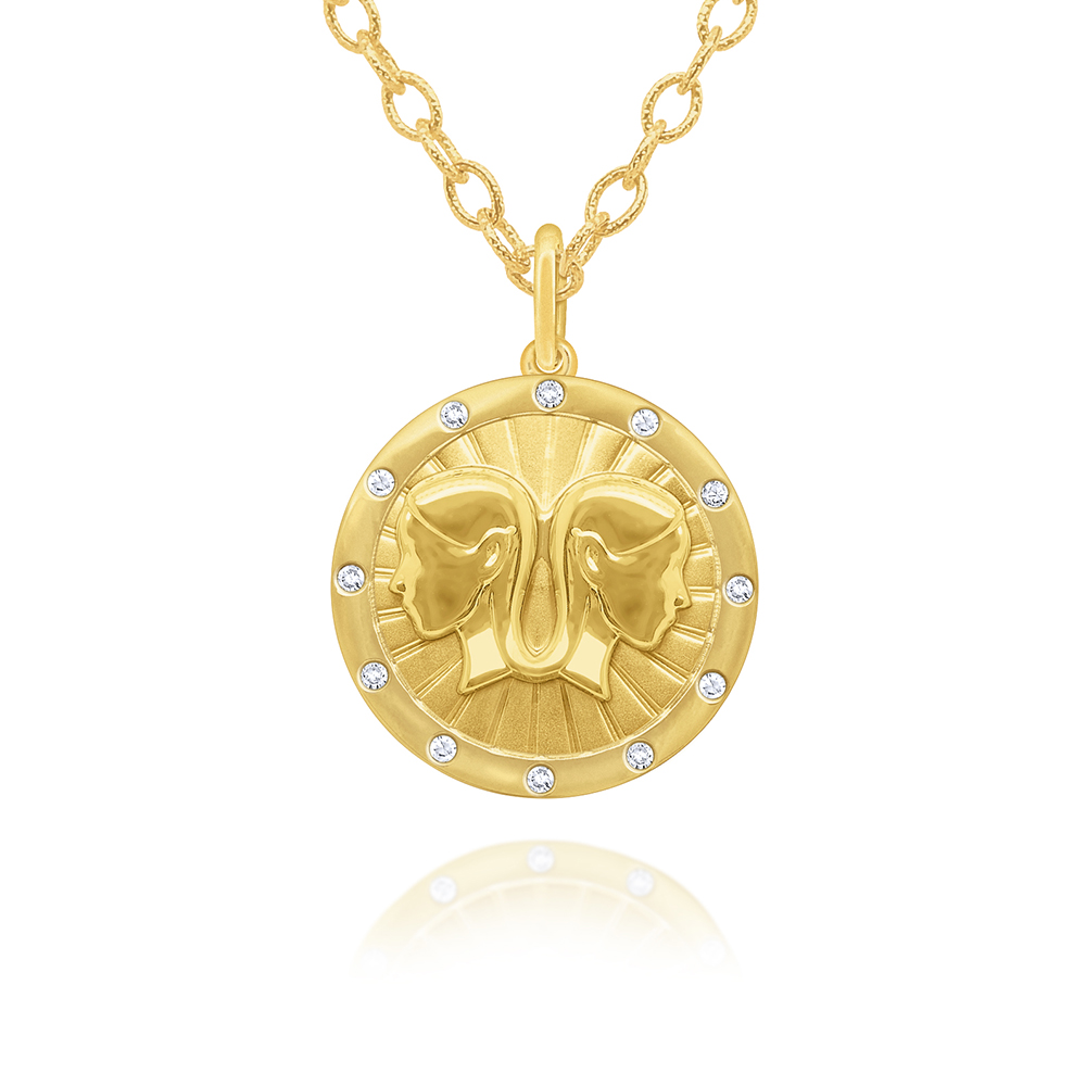 14k Gold and Diamond GEMINI Zodiac Medallion Necklace