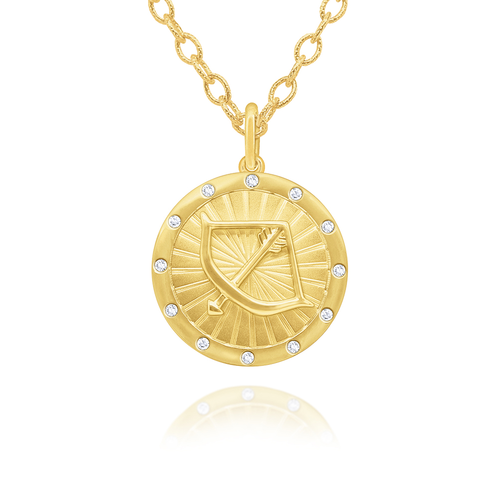 14k Gold and Diamond SAGTTARIUS Zodiac Medallion Necklace