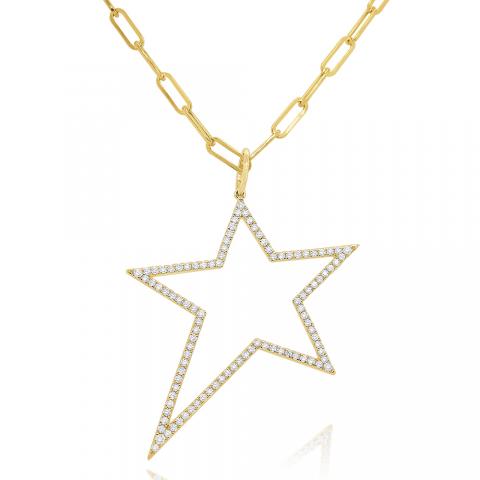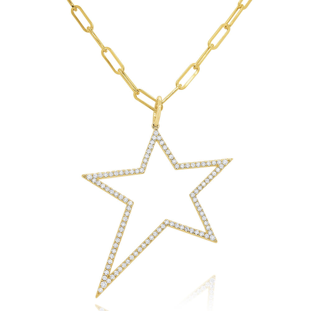 A spectacular jumbo diamond star hangs on a golden paperclip chain. Layer with your other celestial favorites.