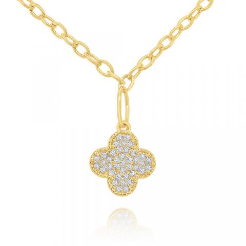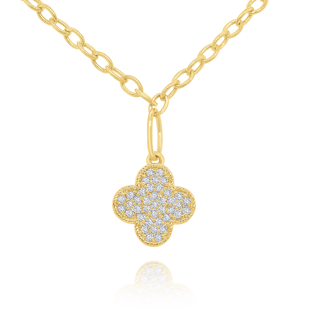 Wear the good fortune of the four leaf clover with this 14K gold necklace accented with 39 sparkling diamonds.