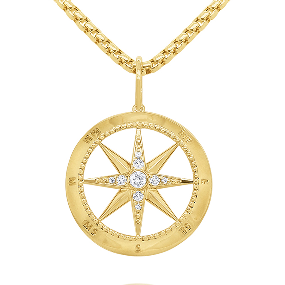 Start your journey with this stunning gold and diamond jumbo compass necklace.