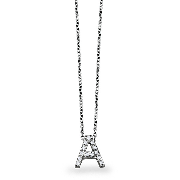 Diamond Block Initial "A" Necklace in 14k White Gold with 13 Diamonds weighing .10ct tw.