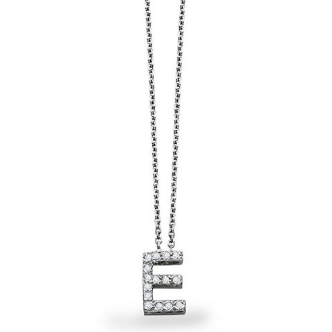 Diamond Block Initial "E" Necklace in 14k White Gold with 15 Diamonds weighing .11ct tw.