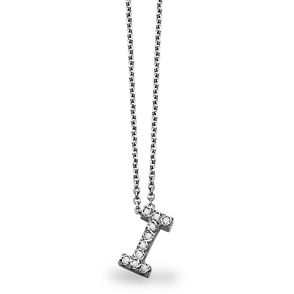 Diamond Block Initial "I" Necklace in 14k White Gold with 10 Diamonds weighing .10ct tw.