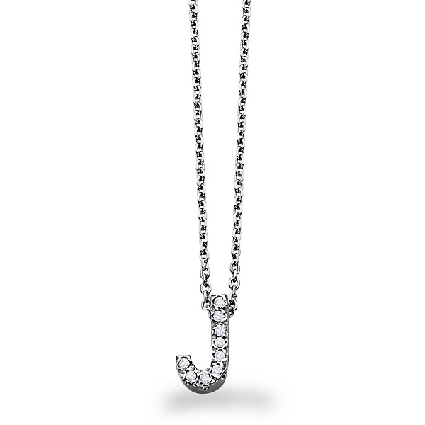 Diamond Block Initial "J" Necklace in 14k White Gold with 9 Diamonds weighing .07ct tw.