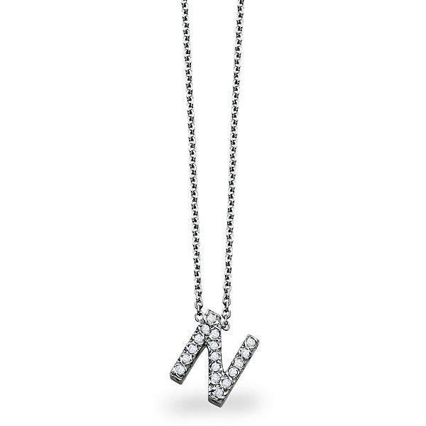 If your name is Nancy, Nina, Natasha, Nicole, Natalie, or Naomi, you will absolutely love this diamond block initial "N" necklace. This is the perfect stylish accessory for any woman with a name starting with "N" and it glitters with 17 glamorous .14 ct tw diamonds. This beautiful necklace is pictured here in 14K white gold.