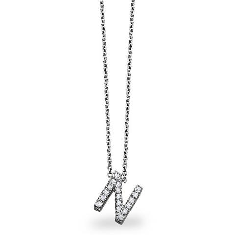 Diamond Block Initial "N" Necklace in 14k White Gold with 17 Diamonds weighing .14ct tw.