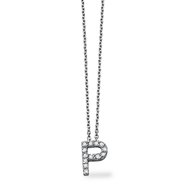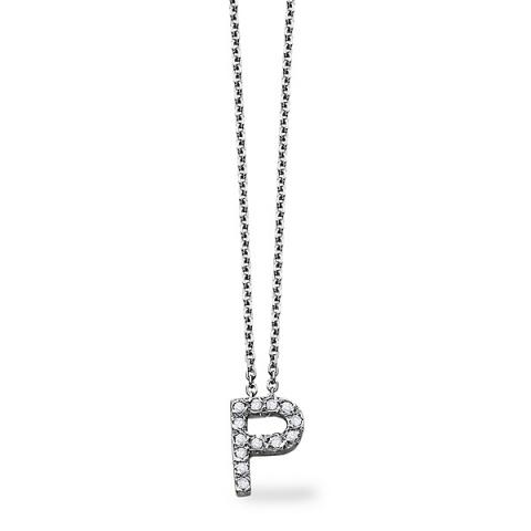 Diamond Block Initial "P" Necklace in 14k White Gold with 13 Diamonds weighing .10ct tw.