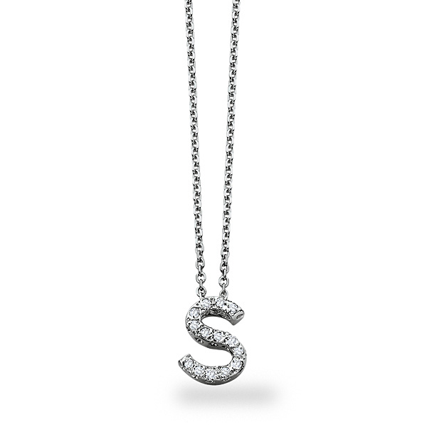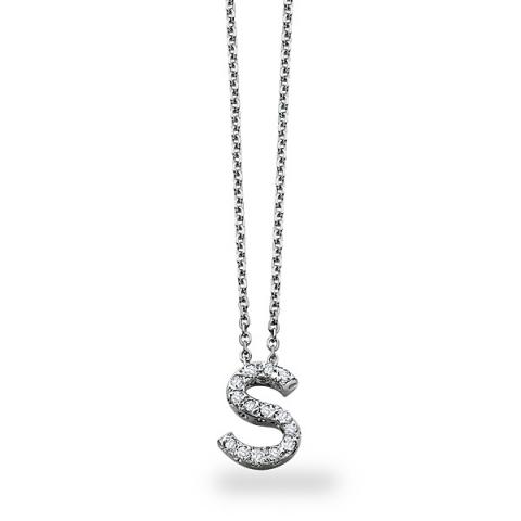 Diamond Block Initial "S" Necklace in 14k White Gold with 14 Diamonds weighing .11ct tw.