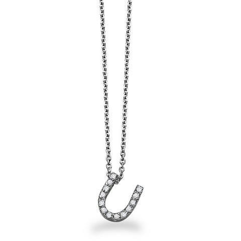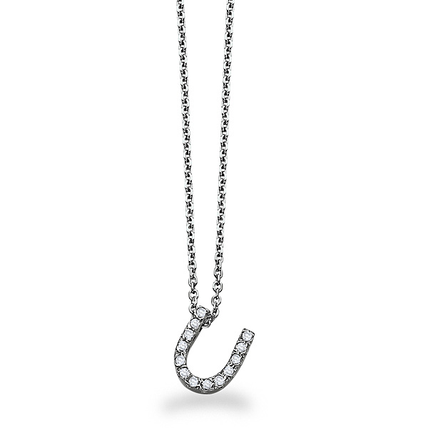 Diamond Block Initial "U" Necklace in 14k White Gold with 13 Diamonds weighing .10ct tw.