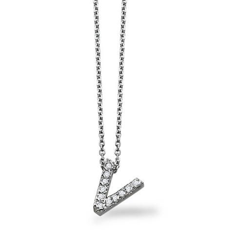 Diamond Block Initial "V" Necklace in 14k White Gold with 11 Diamonds weighing .08ct tw.