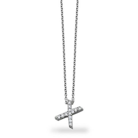 Diamond Block Initial "X" Necklace in 14k White Gold with 13 Diamonds weighing .10ct tw.