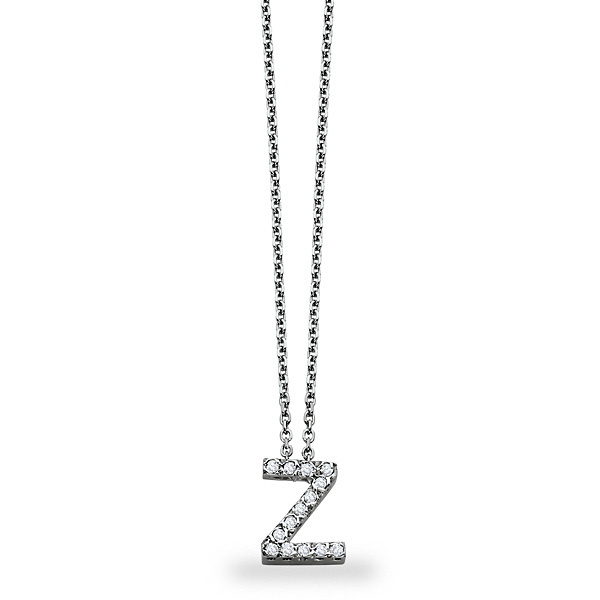 Diamond Block Initial "Z" Necklace in 14k White Gold with 14 Diamonds weighing .11ct tw.