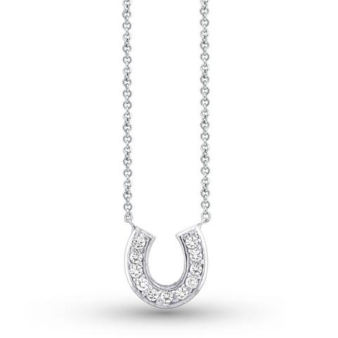 Diamond Small Horseshoe Necklace in 14k White Gold with 11 Diamonds weighing .14ct tw.