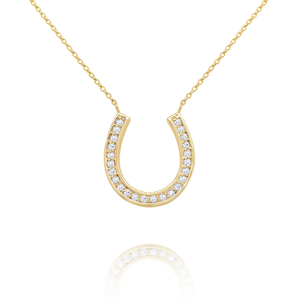 Lucky charms are so much better in gold and diamonds! Layer this diamond horseshoe up with your other talismans.