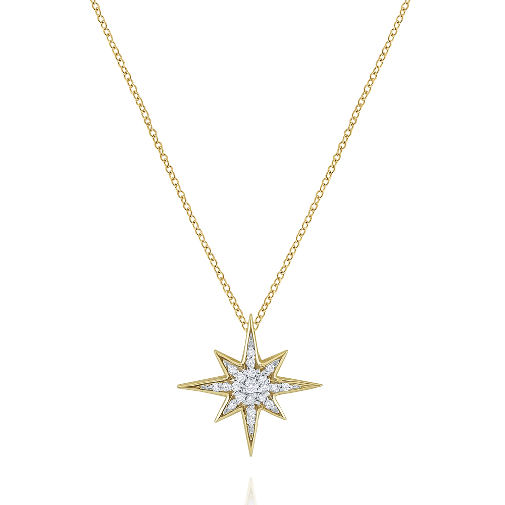 From the center of the universe to the center of attention on your neck, this diamond and gold piece is perfect for everyday wear as well as when layered with other necklaces as compliments.