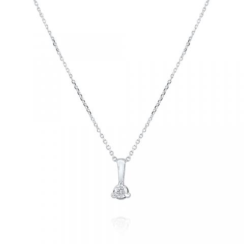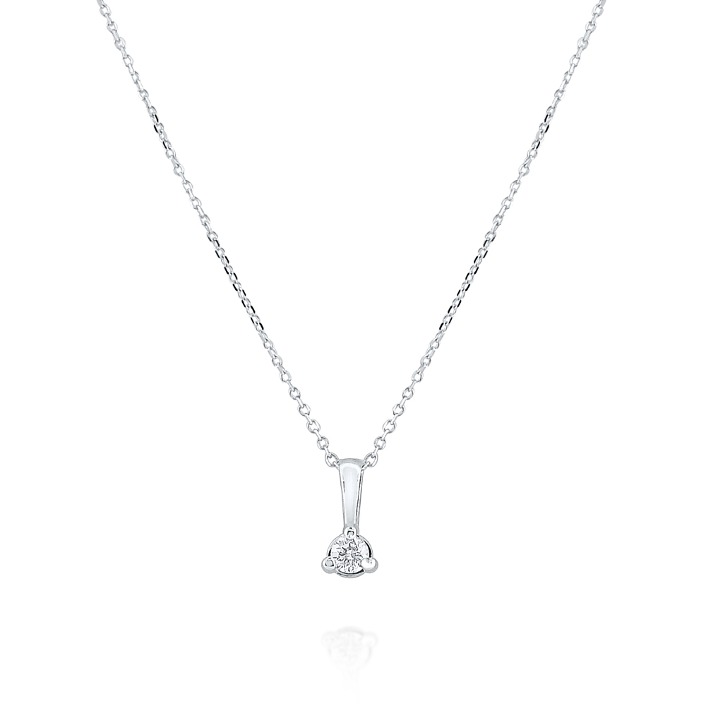 Shown in white gold, this simple and elegant pendant is joined by a single diamond in center tying into a simplistic yet sophisticated motif.