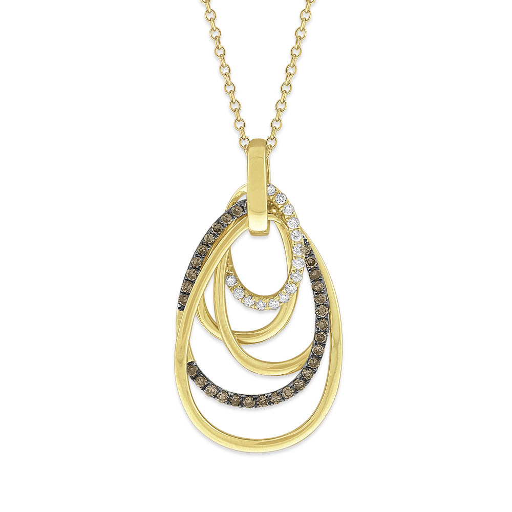 Champagne and White Diamond Multi Teardrop Necklace in 14K Yellow Gold with 46 Diamonds Weighing .29ct tw