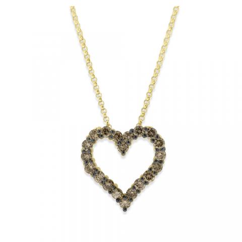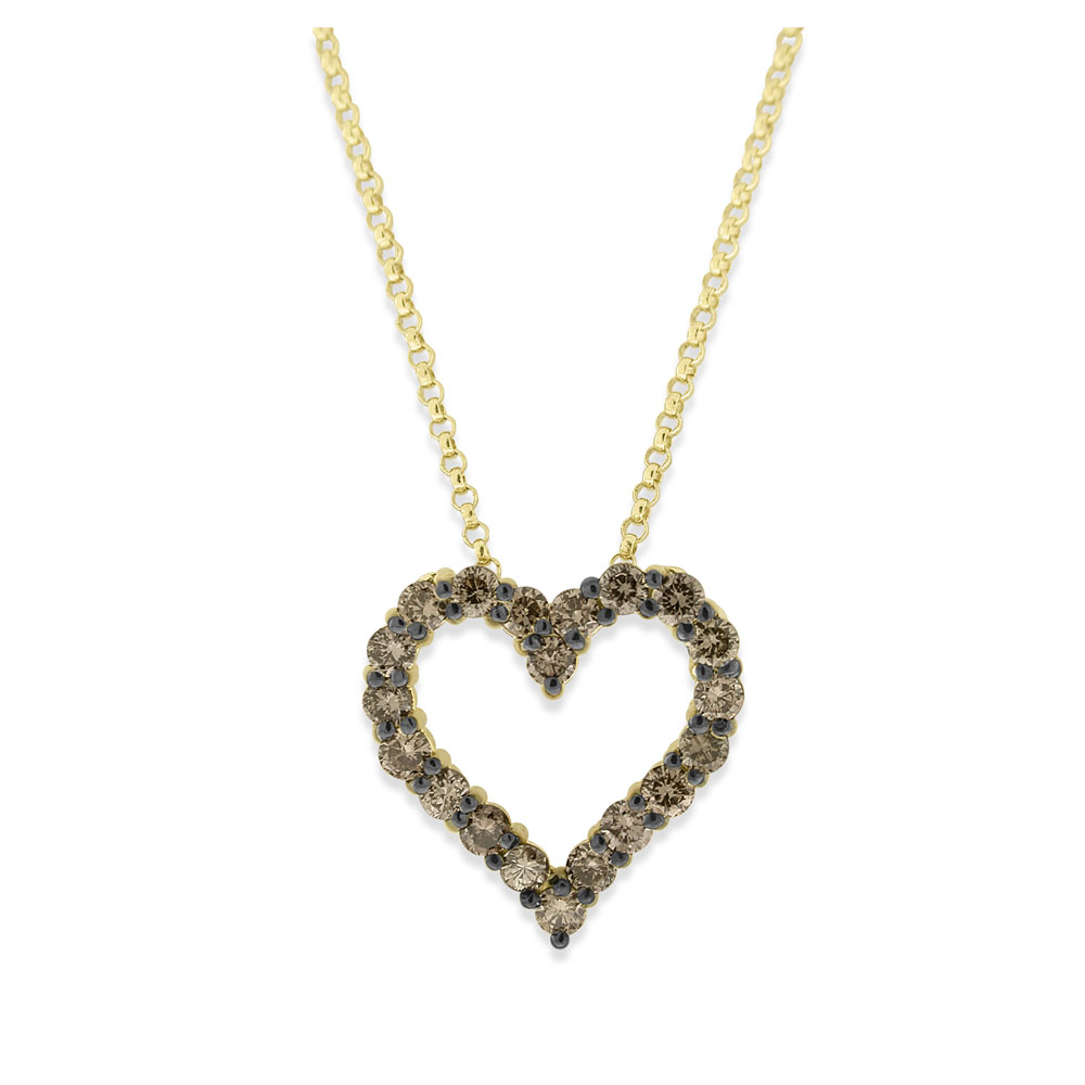 Champagne Diamond Heart Necklace in 14K Yellow Gold with 20 Diamonds Weighing .65 ct tw