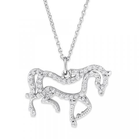 Diamond "Year of the Horse" Necklace in 14K White Gold with 55 Diamonds Weighing .32ct tw