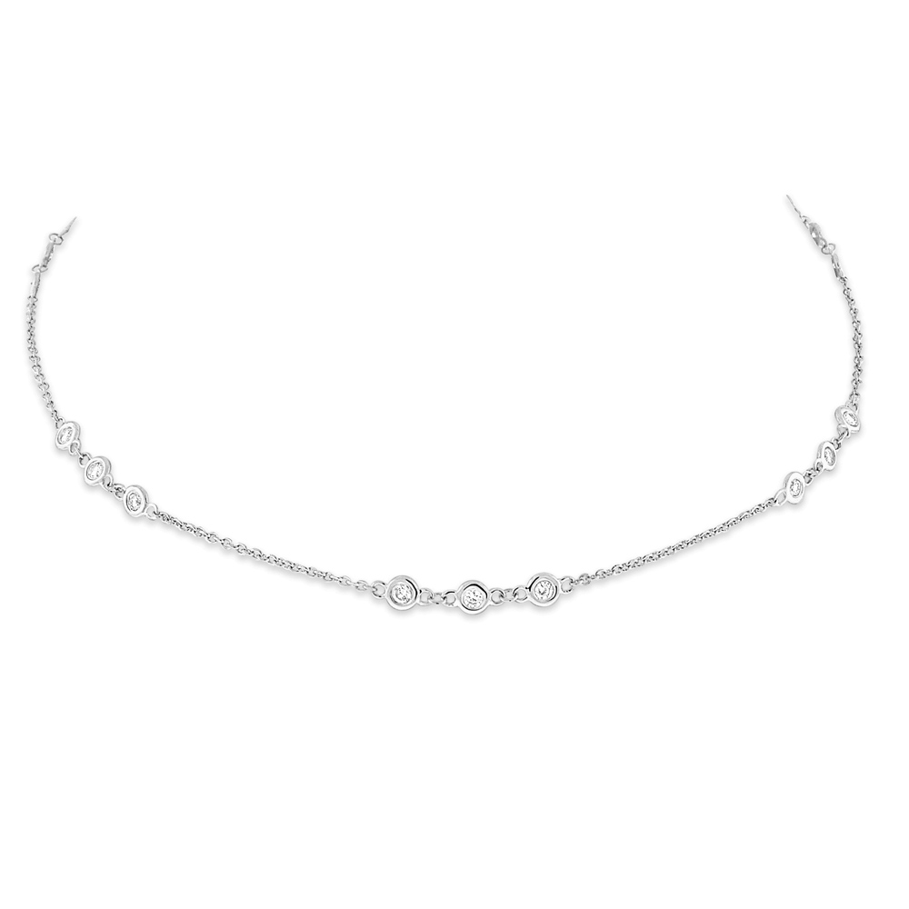 Who doesn't want to don a strand of 60 diamonds around their neck? This beauty of this diamond by the yard necklace set in in 14k white gold with 60 flashing diamonds weighing 3.35ct tw, is unmatched. The next time you need a great necklace for your outfit, here it is!