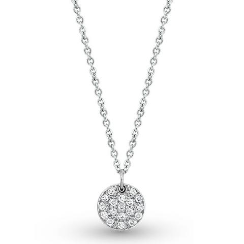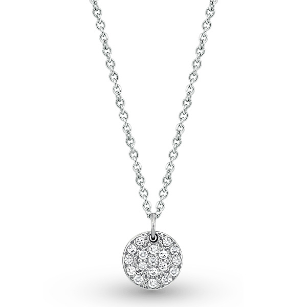 Diamond Small Disc Necklace in 14k White Gold with 18 Diamonds weighing .22ct tw.